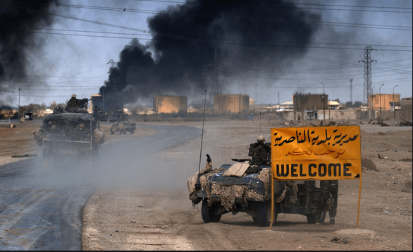 Shaking my mind free of these historical musings, I recalled a few days earlier as I disembarked from a Sea King into enveloping darkness of the freezing desert air. The tail gunner grabs my arm and yells “What are you reading?” Looking down at the book through my night vision, I handed him a well-worn copy of T.E. Lawrence’s book, The Seven Pillars of Wisdom. The ensuing actions along the ancient banks of the Euphrates and Tigris would turn out to be some of the most intense engagements during the initial months of the invasion. The supposed intent of the mission was to liberate these oppressed people from a tyrant, but a portion of the population forcefully opposed our confused and dubious efforts. In short order, it would become apparent to all, that the Iraqi people had their own notions of government informed by the theocratic principles that lay at the heart of Islam and would begin to plan their response to our interference within their social order. The invasion was ending, but the war was just beginning on multiple fronts.